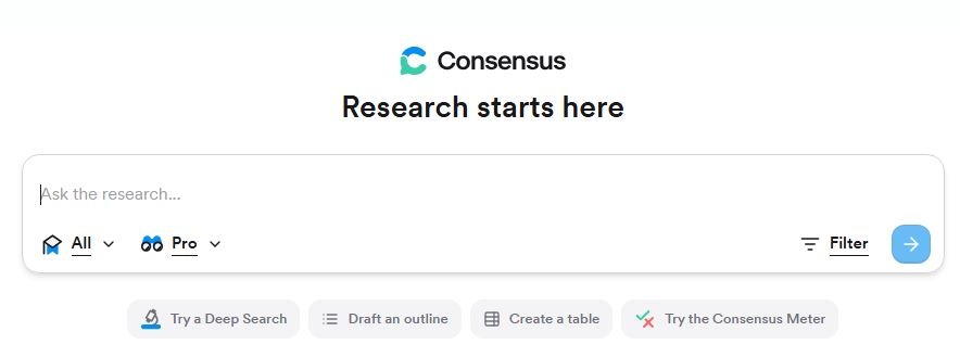 Tools bernama Consensus juga bisa diandalkan para akademisi maupun peneliti dalam mencari research gap. Tools satu ini juga berbentuk chatbot dengan teknologi AI. Sehingga pengguna tinggal menanyakan publikasi ilmiah terbaru pada topik tertentu.
