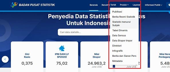 Website pertama yang bisa dituju untuk mendapatkan data yang valid adalah BPS (badan Pusat Statistik). Website resmi BPS bisa dituju untuk kebutuhan data di bidang manapun dan sifatnya nasional.