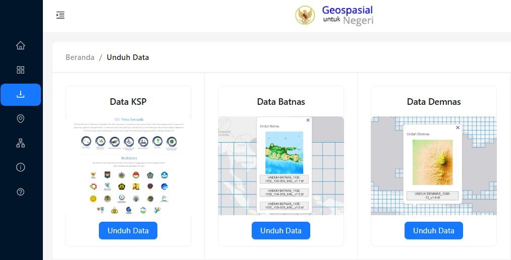 Selanjutnya yang menjadi rekomendasi website data penyedia sumber statistik adalah Ina-Geoportal. Sesuai dengan namanya, Ina Geoportal adalah portal resmi geospasial nasional Indonesia yaitu sistem berbasis peta digital yang dikelola oleh Badan Informasi Geospasial (BIG).