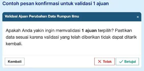 - Pilih hasil validasi di antara “Tolak” atau “Setujui”.
