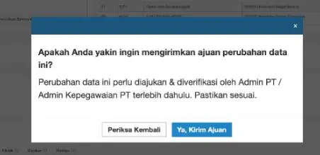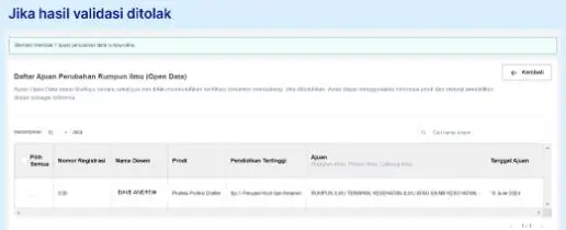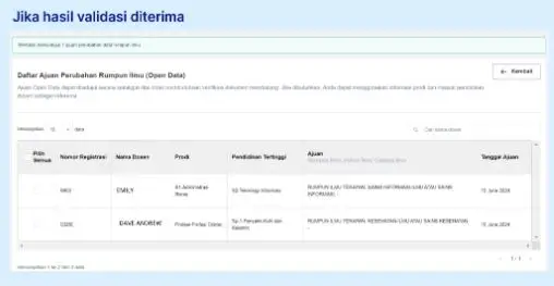 Jika dosen sudah melakukan pembaharuan data rumpun ilmu maupun menarik pengajuan dan mengubah data yang tervalidasi. Maka akan ada proses validasi oleh admin perguruan tinggi.