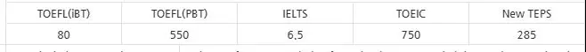 Selain itu, Skor tes kemampuan bahasa Inggris harus mencapai batas minimal yang ditetapkan pihak GIST. Berikut detail passing grade-nya: