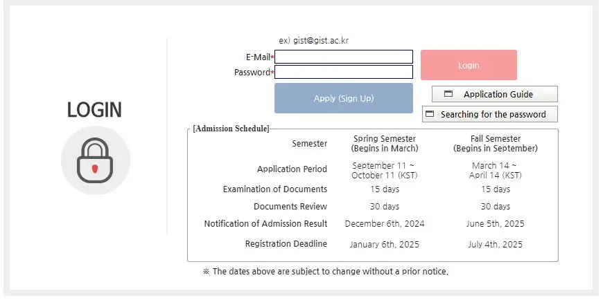 Pendaftaran di dalam program beasiswa Gwangju Institute of Science and Technology (GIST) dilakukan secara online. Berikut adalah detail tahapannya: