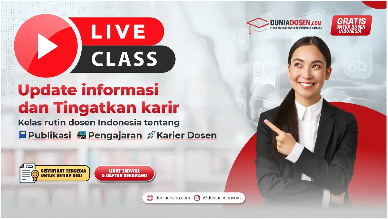 Duniadosen selalu mengadakan webinar seputar peningkatan karir dan pelaksanaan tridharma perguruan tinggi setiap bulan. Bagi Anda yang membutuhkan arahan, penjelasan, dan mendapatkan solusi dari ahli, jangan lewatkan informasi webinar melalui laman Homepage dan media sosial resmi Instagram @duniadosencom!