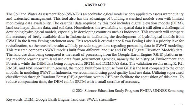 Bagian selanjutnya adalah abstrak. Pada bagian ini, penulis akan menjelaskan rangkuman dari isi artikel yang dipublikasikan ke jurnal terindeks SINTA. Kemudian ditutup dengan kata kunci (keyword).