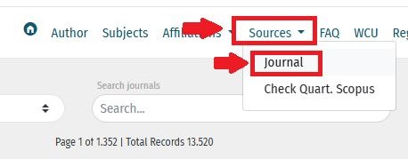 - Tahap berikutnya adalah mencari jurnal sesuai scope dan terindeks SINTA. Pada halaman utama website SINTA, silahkan masuk ke menu “Source” kemudian klik pilihan “Journal”.