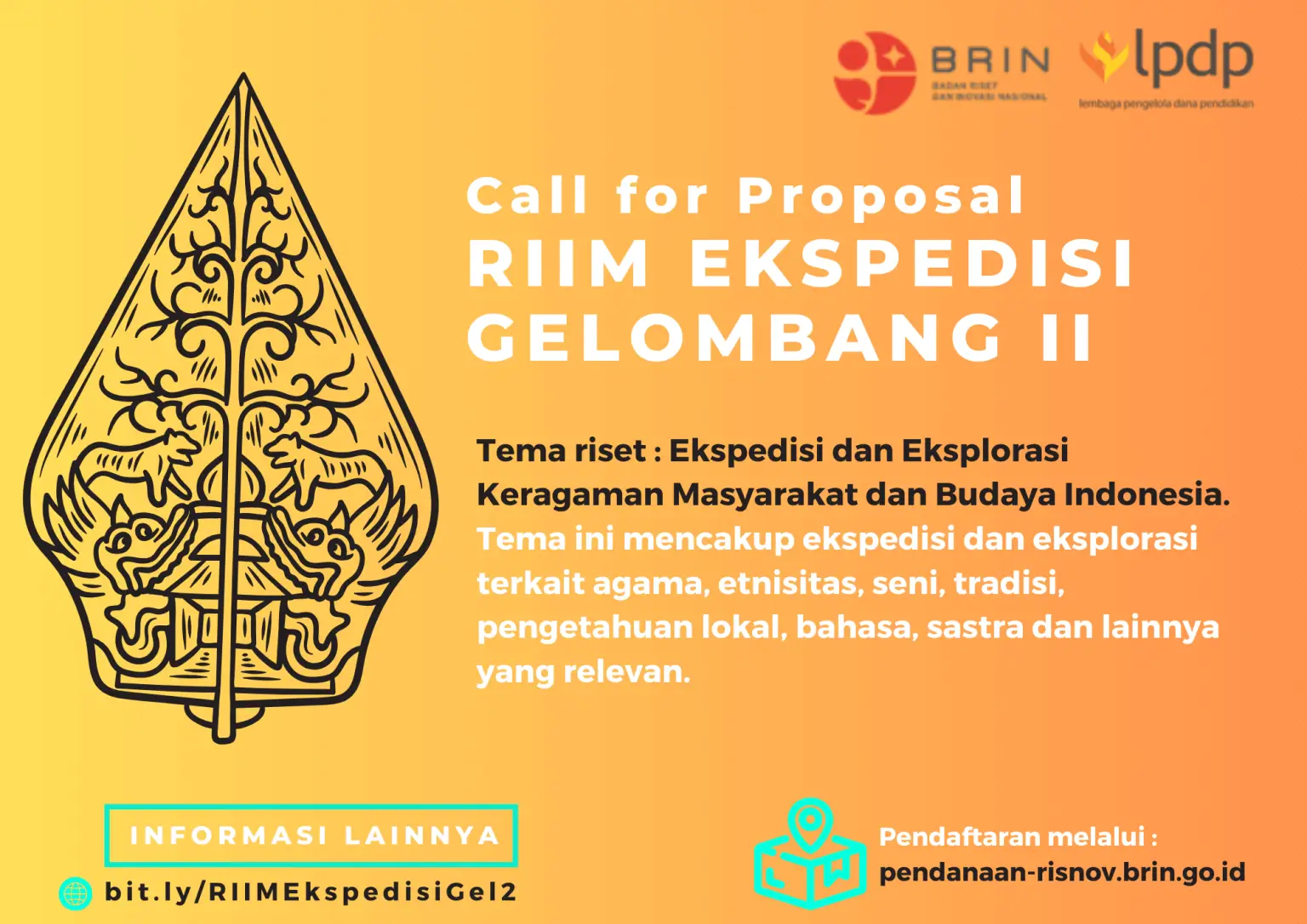 Tema utama dalam pelaksanaan hibah RIIM Ekspedisi BRIN adalah “Ekspedisi dan Eksplorasi Keragaman Masyarakat dan Budaya Indonesia”. Kegiatan penelitian ekspedisi dan eksplorasi pengusul bisa pada aspek agama, etnisitas, seni, tradisi, pengetahuan lokal, politik, hingga bahasa.