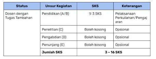 Sementara untuk pelaksanaan unsur (tugas) penelitian, pengabdian kepada masyarakat, sampai tugas penunjang boleh kosong. Artinya dosen selama memangku jabatan manajerial yang masuk kategori tugas tambahan boleh menjalankan dan tidak menjalankan 3 tugas pokok tersebut. Berikut penjelasannya dalam gambar: