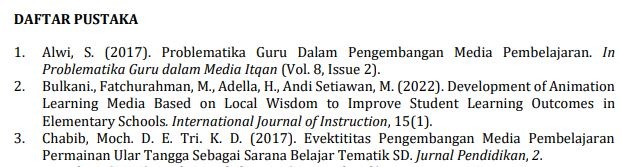 Berikut adalah format penulisan referensi atau daftar pustaka menggunakan APA Style: